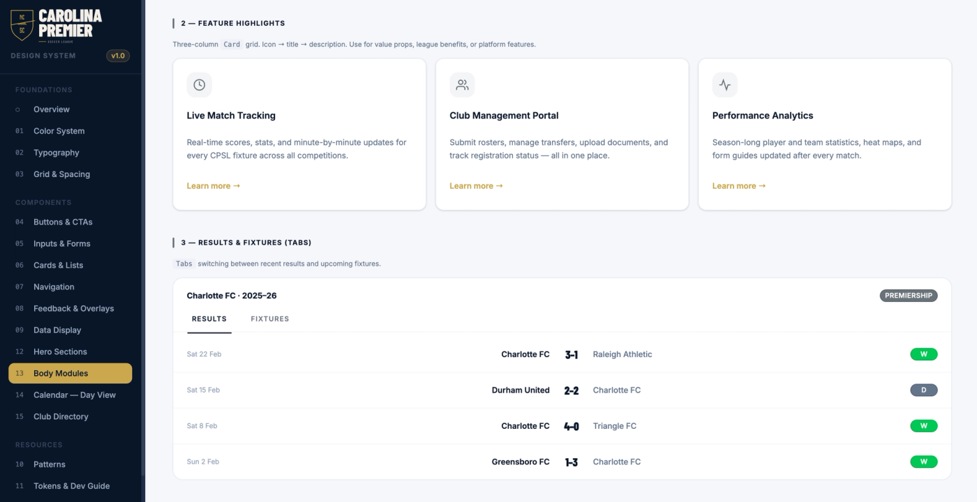 A flexible design system was created to accelerate growth and ensure consistency across every touchpoint. It can be adopted by individual clubs to quickly build their own branded destinations while staying aligned with the league.
